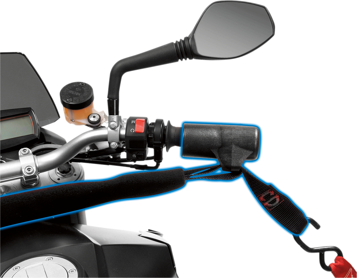 Simple, quick and very easy to use; mounts on the grips and keeps tie-downs away from the body