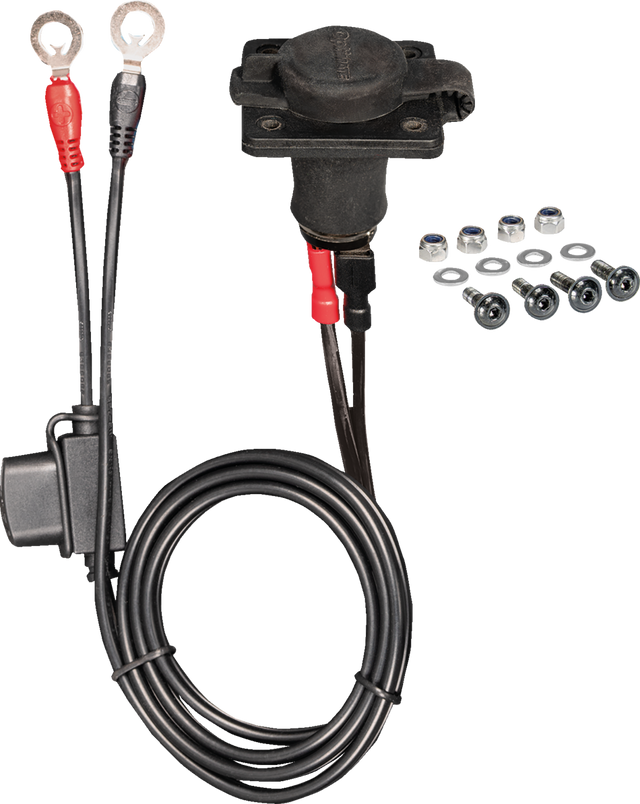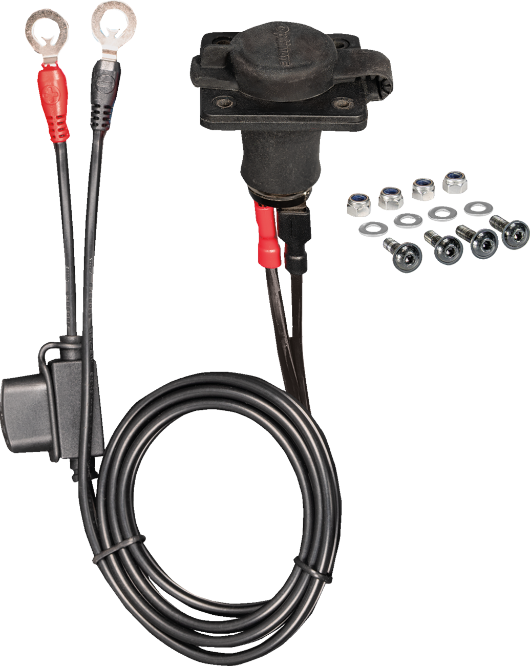 Creates an external charging and power connection point on a motorcycle, UTV or ATV