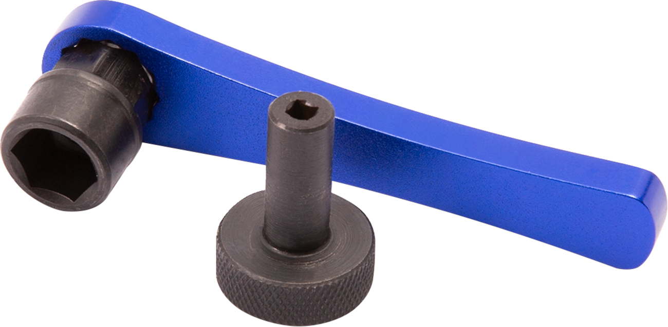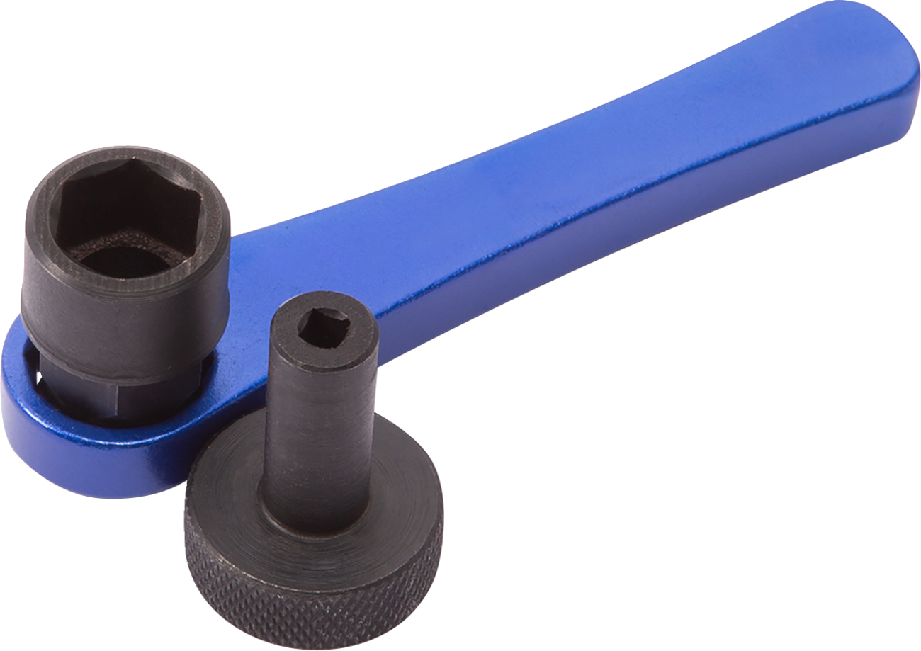 Integrated repositionable wrench handle holds the lock nut while the drivers are used to loosen or tighten the valve adjustment screw