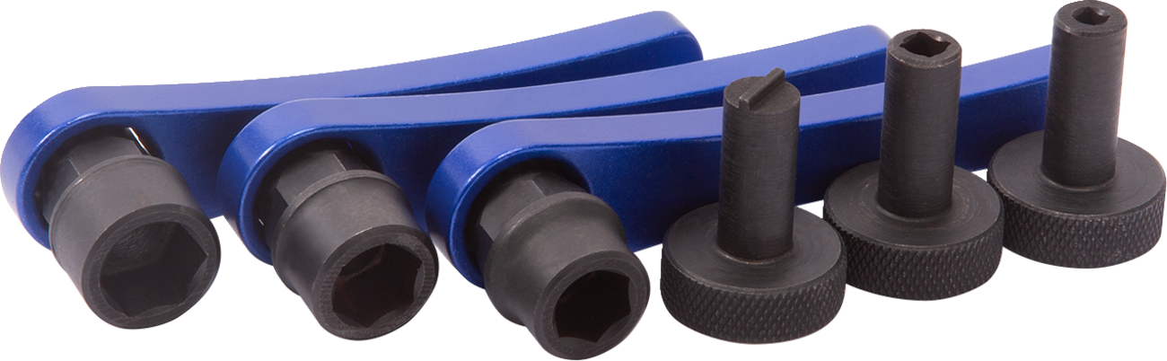 8 mm, 9 mm, and 10 mm lock nut sockets; and 3 mm square, 4 mm square, and straight slot type drivers included