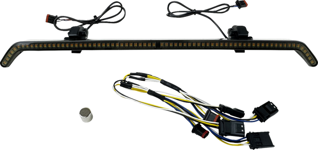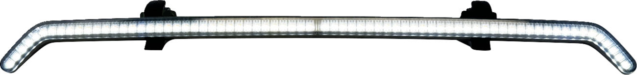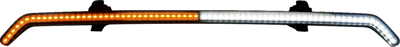 Slimline smoked faceted lens stretches across the lower, center windshield edge to add a bright white running light and full contrast amber turn signal