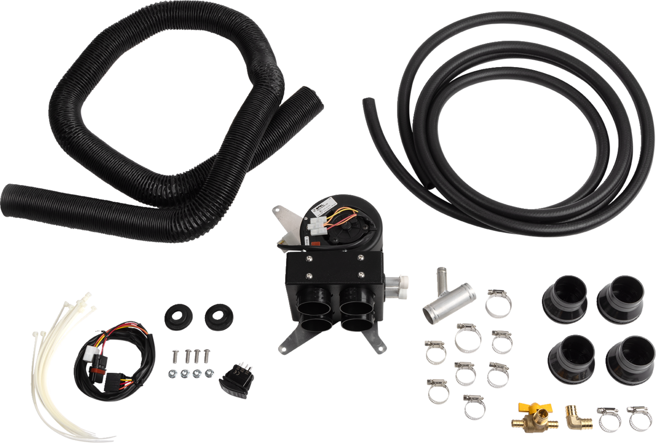 12 V universal cab heater kit for UTVs with 1\" (2.54 cm) and 3/4\" (1.9 cm) radiator hoses