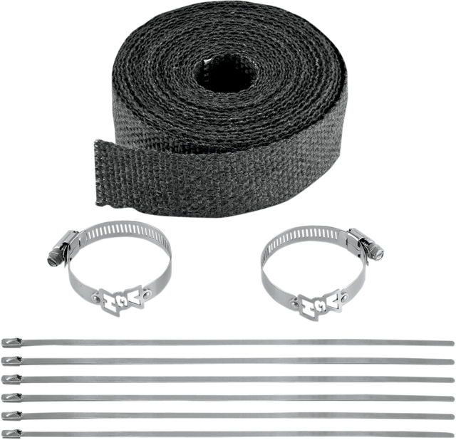 Includes 2\" x 25\' roll of black wrap tape, two Vance & Hines wrap clamps and six locking stainless steel ties.