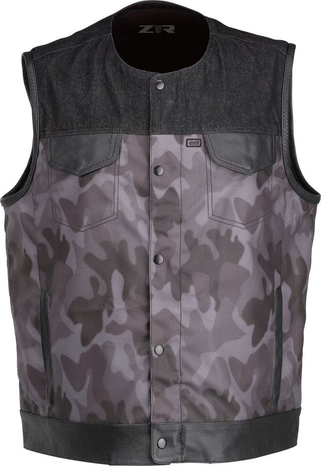 Ripstop chassis with denim panels on shoulders and full grain leather accents