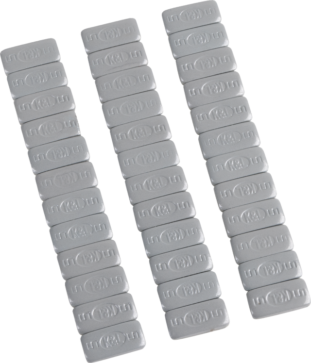 Pre-segmented stick-on steel wheel weights to match most stock and custom wheels