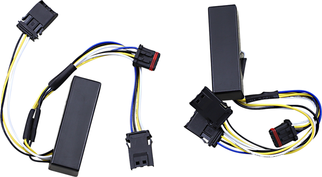 Plug and play adapter for Custom Dynamics® Amber/White Micro Bullet LED Front Turn Signals, install in line with bike\'s factory wiring to allow for simple plug-in-play installation