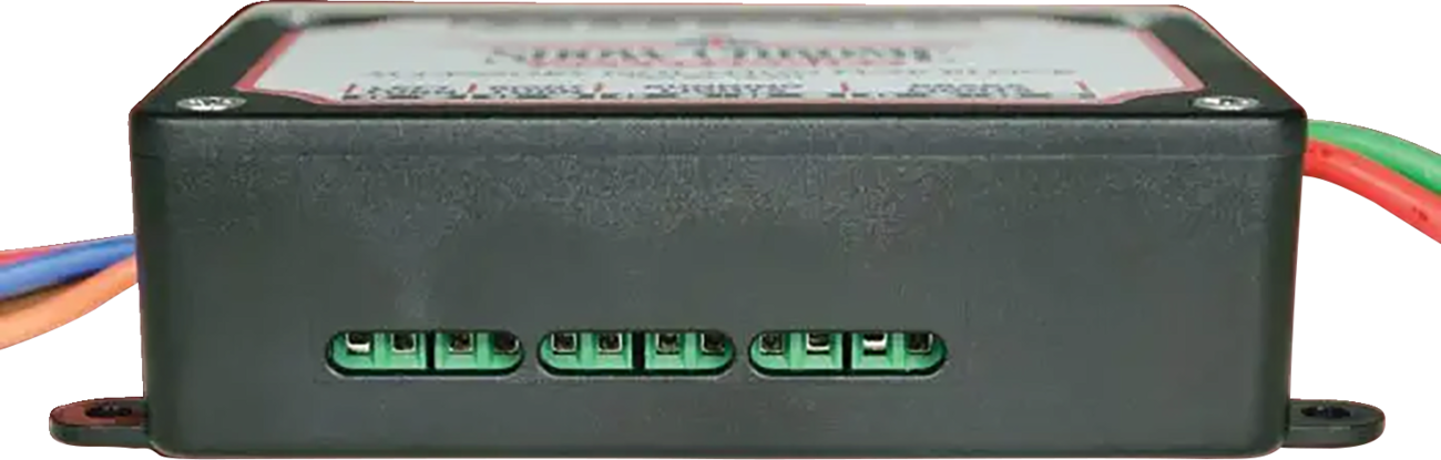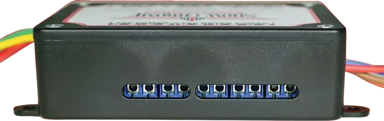 Separate left and right turn signal connection terminals, 2 running light and 2 brake light terminal blocks, all protected by four 8 A , 277 V automatic switch relays for complete isolation