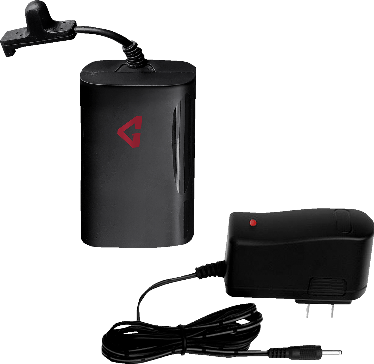 Includes 7V (2,600 mAh) rechargeable battery and single wall charger.