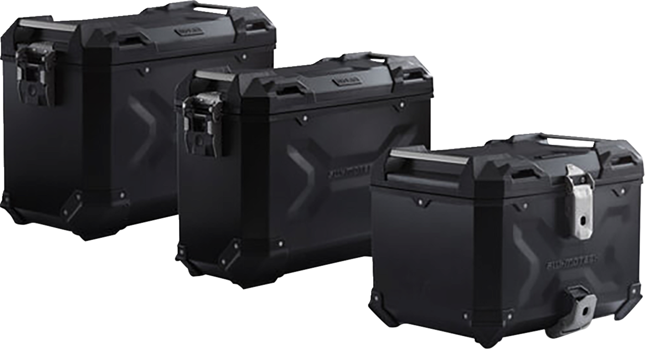 Water and dust-tight TRAX ADV premium aluminum case, two side cases, and a top case offer best luggage protection