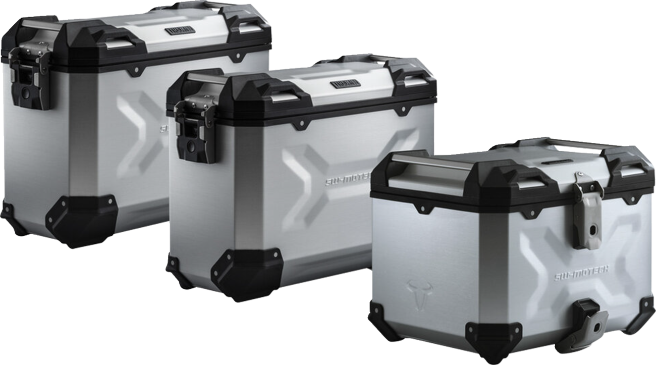 Water and dust-tight TRAX ADV premium aluminum case, two side cases, and a top case offer best luggage protection