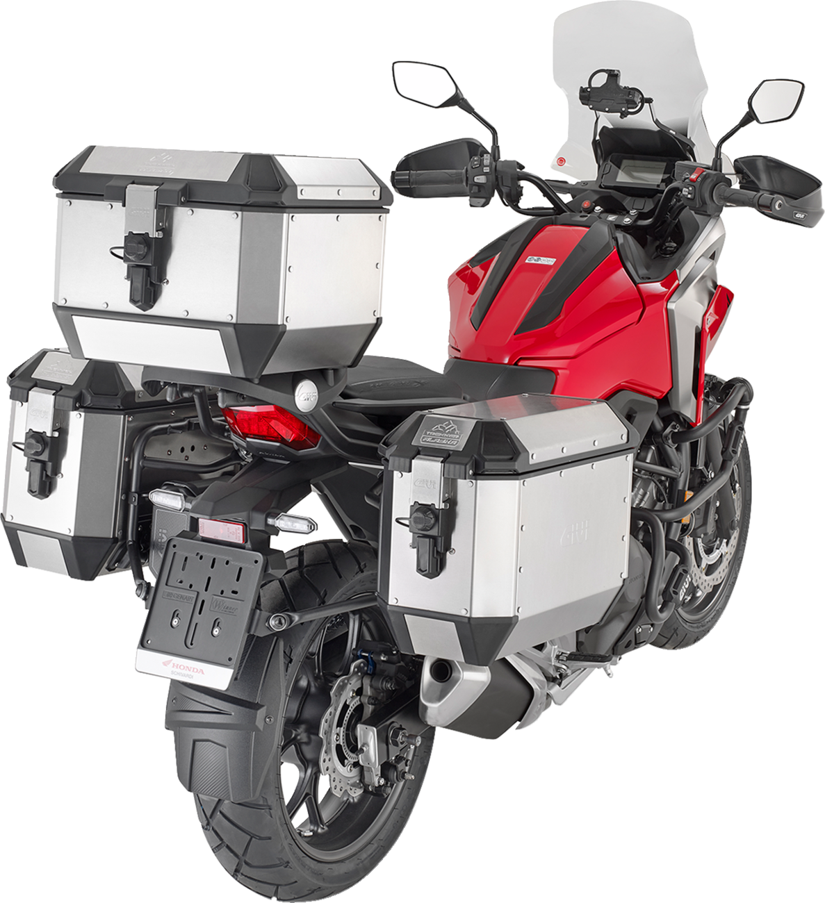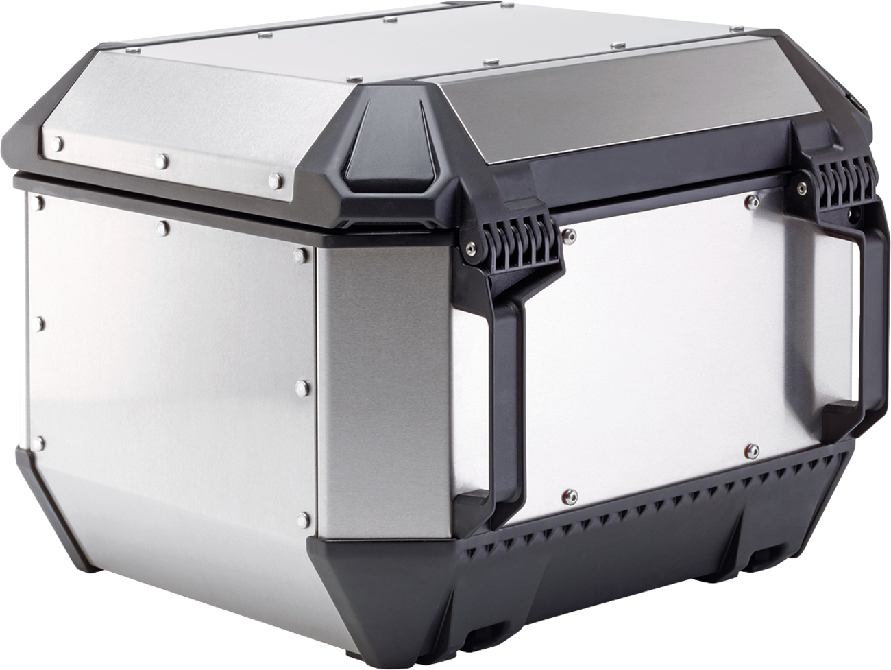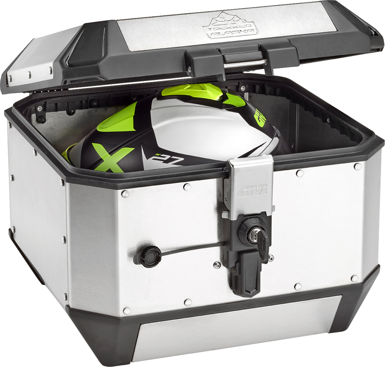 Two handles placed on the back of the top case, which are also integrated with the strong hinges on the lid, allowing the latter to open more fully without the need for classic retention cables: once opened, the lid is held in position in order to make packing/unpacking easier