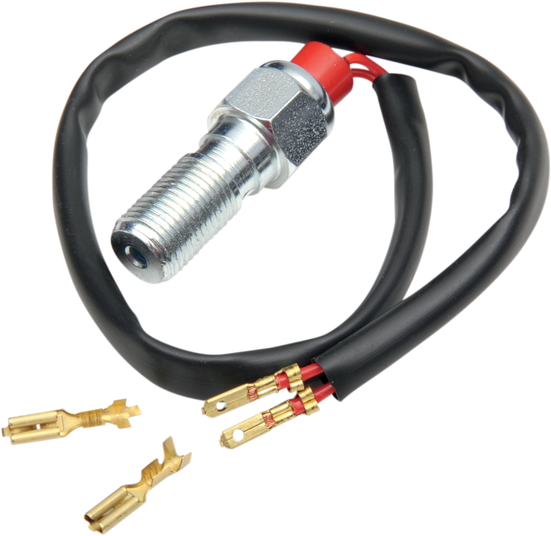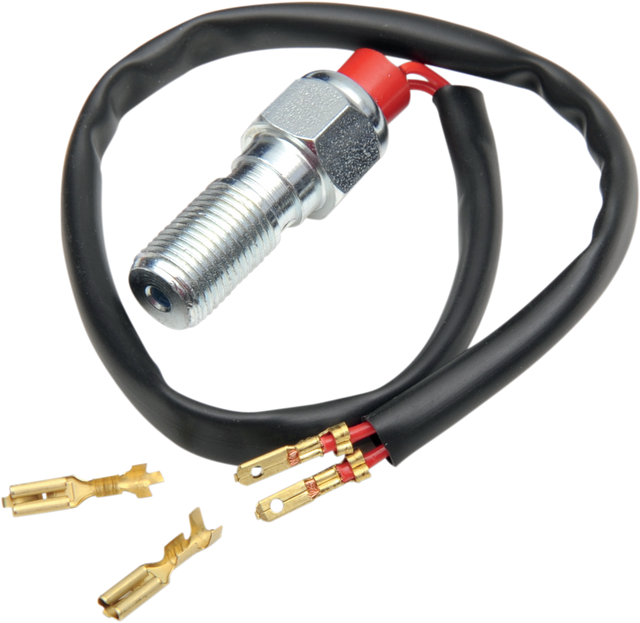Brake light switch banjo bolt replaces the OEM part and allows changing of the master cylinder or using rear set conversions