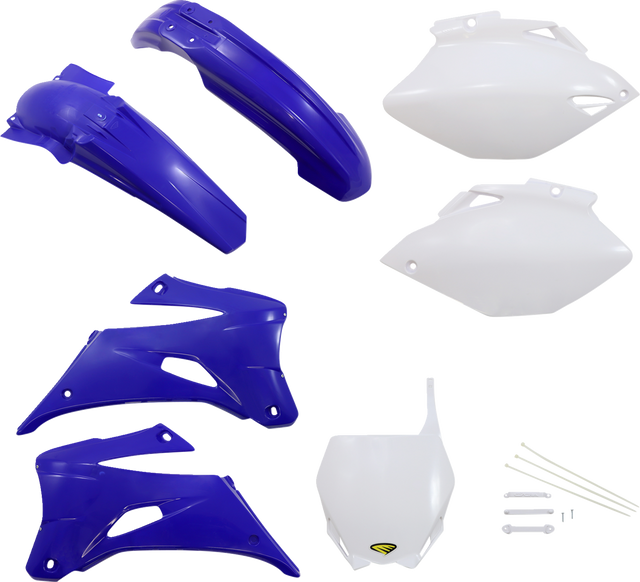 Includes Performance front fender, Stadium front number plate, Powerflow radiator shrouds, side panels, Powerflow rear fender and fork guards (unless noted otherwise)