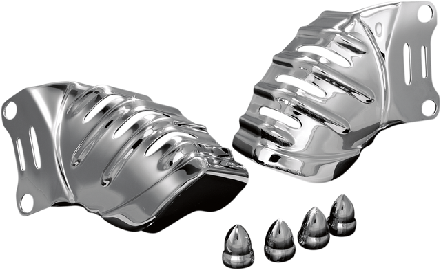 Covers are stamped steel, two-piece design with a chrome finish
