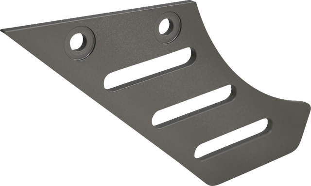 Deflects rocks and shields the drive system from impacts which would derail the chain