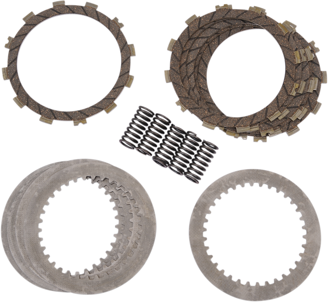 Complete engine set of friction plates, HD springs and steel separator plates prevent premature driven plate wear, oil muddying and loss of stack height