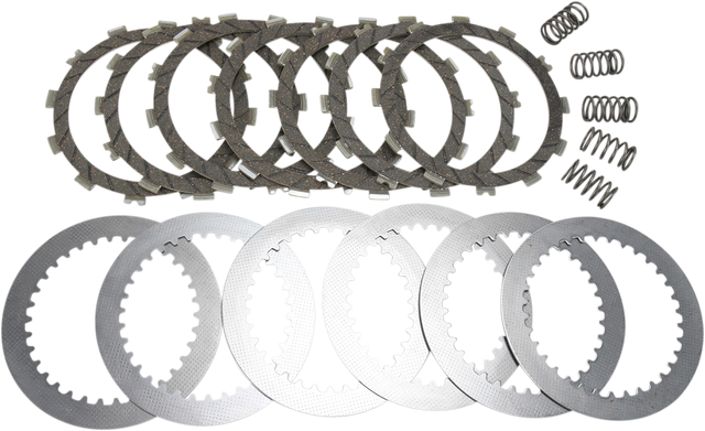 Complete engine set of friction plates, HD springs and steel separator plates prevent premature driven plate wear, oil muddying and loss of stack height