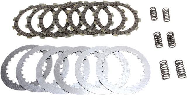 Complete engine set of friction plates, HD springs and steel separator plates prevent premature driven plate wear, oil muddying and loss of stack height