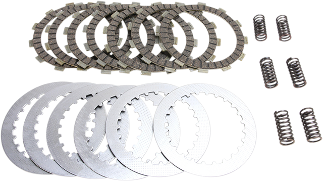 Complete engine set of friction plates, HD springs and steel separator plates prevent premature driven plate wear, oil muddying and loss of stack height