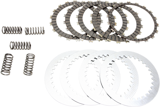 Complete engine set of friction plates, HD springs and steel separator plates prevent premature driven plate wear, oil muddying and loss of stack height