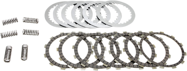 Complete engine set of friction plates, HD springs and steel separator plates prevent premature driven plate wear, oil muddying and loss of stack height