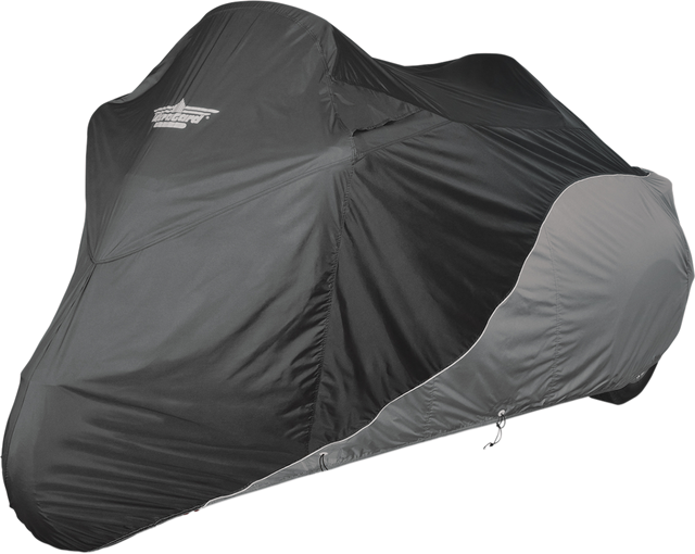 Heat shield protects against hot exhaust pipes and allows immediate application of cover