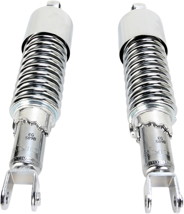 Custom Shorty Shocks with Shroud - Chrome Body/Chrome Spring Finish - Clevis Lowering