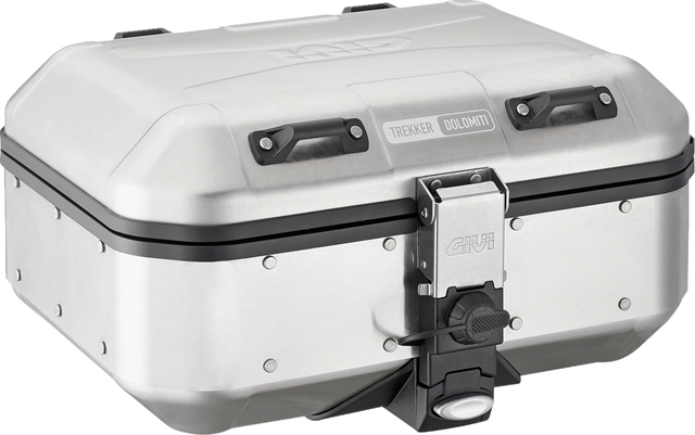 Four nylon belt-strap loops on the lid, which allow the mounting of additional bags using Trekker Straps