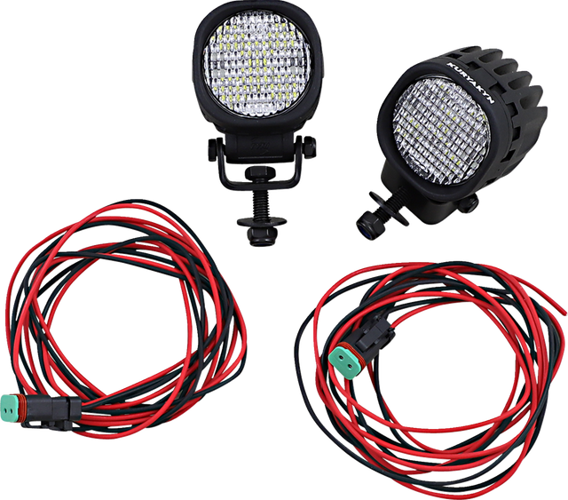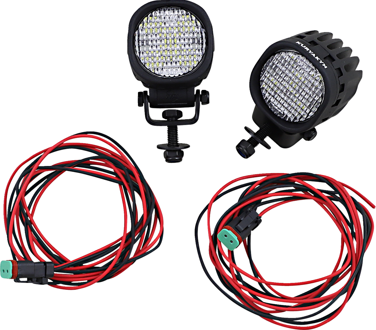 Kit includes two lamps with sealed connectors and wiring pigtails, and integrated mount brackets with fasteners