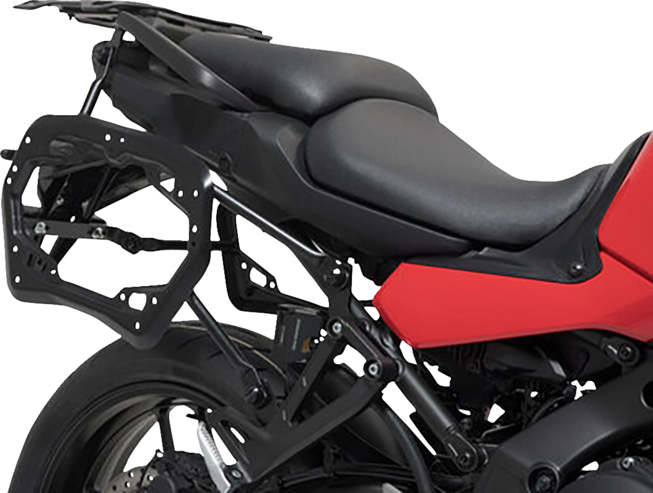 The bike-specific carriers and size of the cases are designed to perfectly match the shape of the tail as well as the motorcycle\'s exhaust system