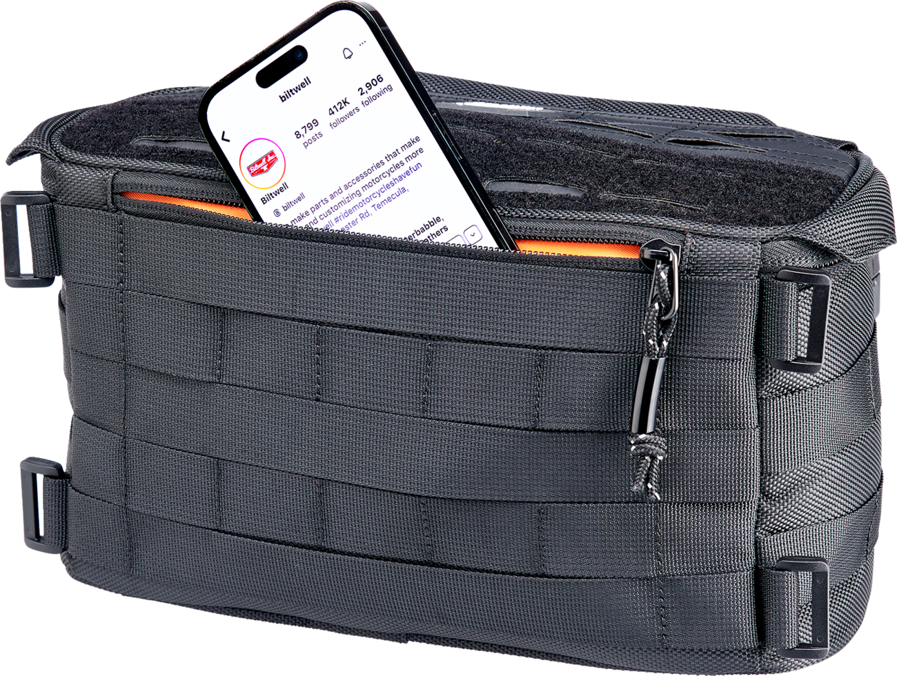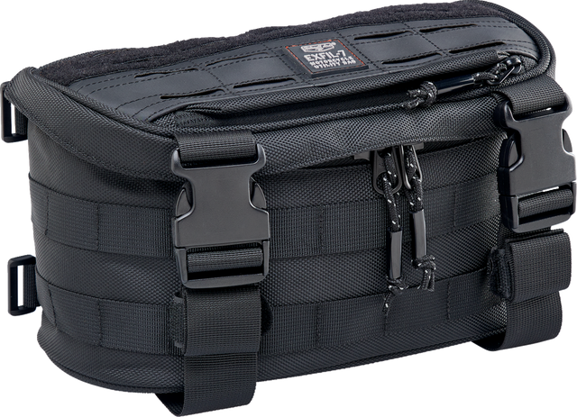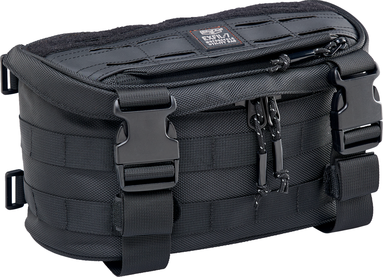 Install the EXFIL-7 bag on your frame’s down tubes, above the headlight, on tall and mid-sized handlebars, and of course on either side of a sissy bar (in front of the taillight and behind your lower back