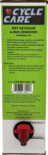 Cycle Care® Formula 33 for Windshields, Paint & Chrome, a hyper-wetting spray, to clean and polish all surfaces