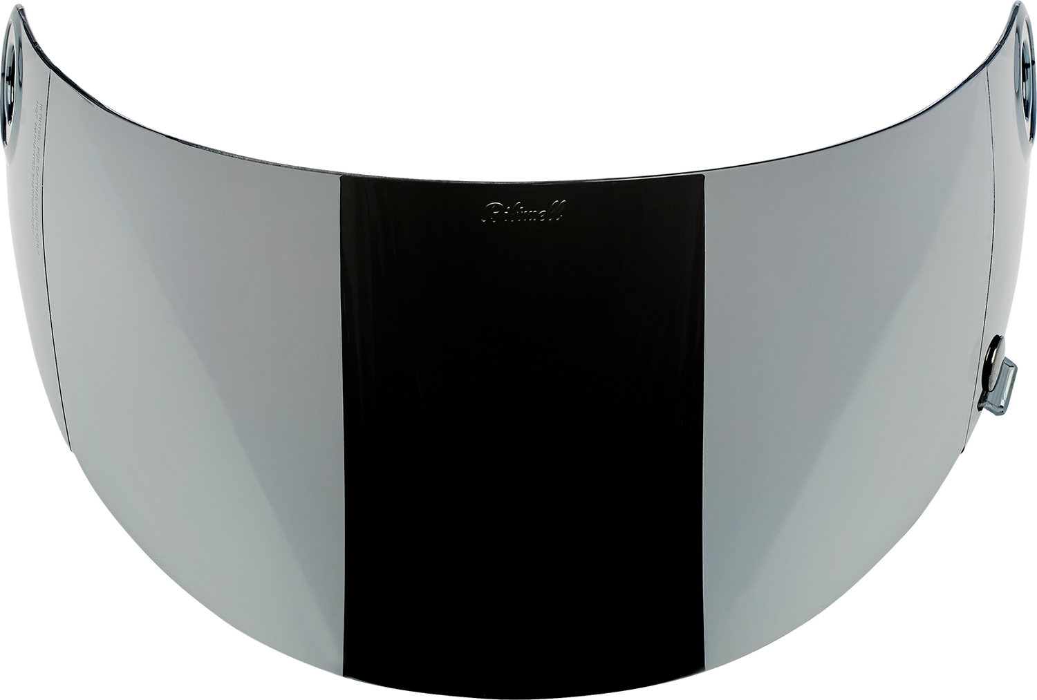 Nickel-plated stainless-steel snap on shield fastens securely to snap on helmet shell