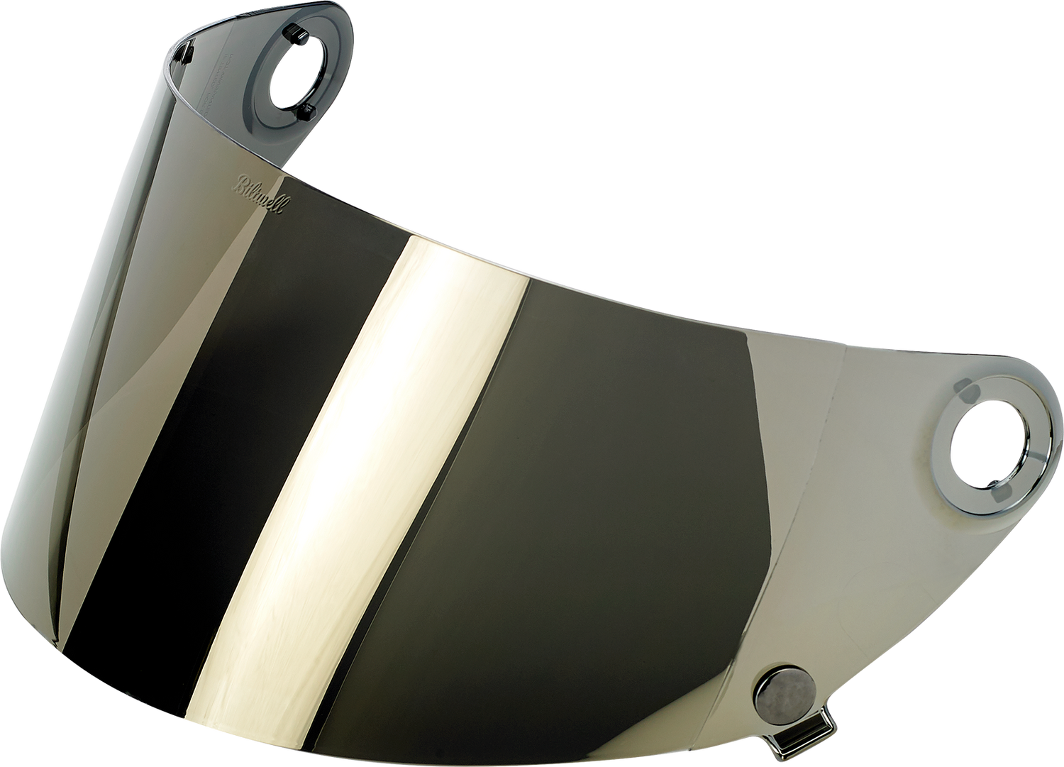 Nickel-plated stainless-steel snap on shield fastens securely to snap on helmet shell