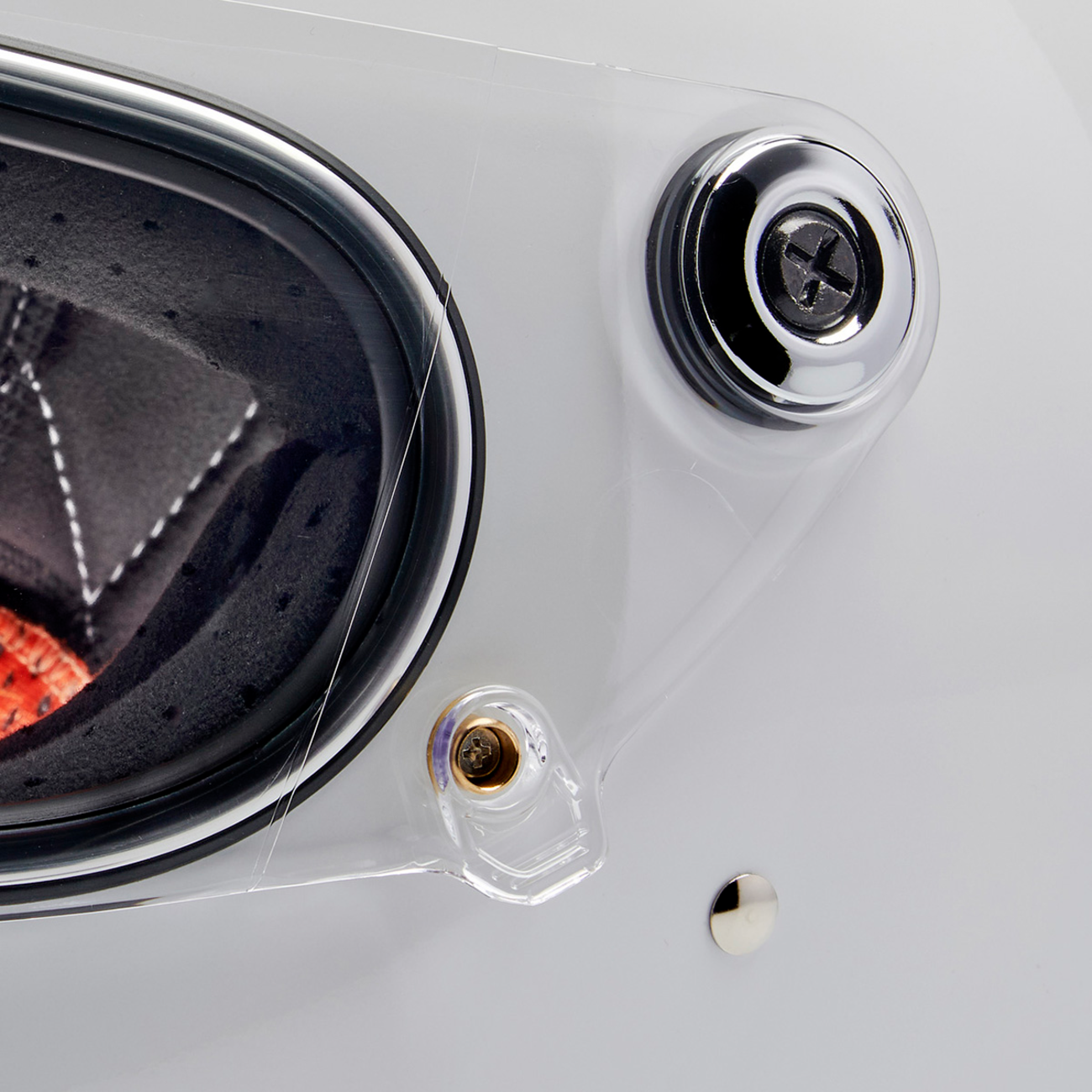 Rugged shield hinge hardware with robust detents allows you to open the shield at slow speeds for increased airflow
