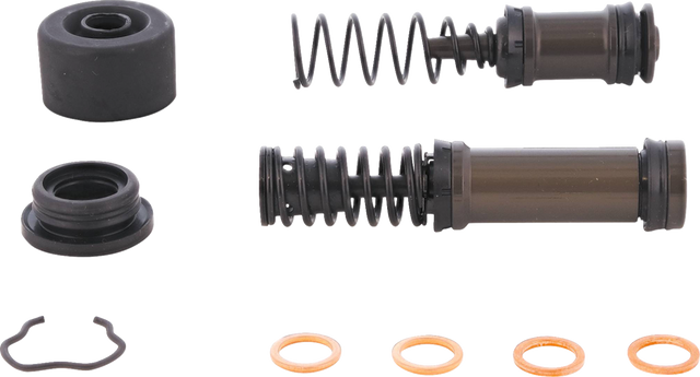 Kit contains all the components to re-seal leaking master cylinders: copper washers, cup seals, replacement screws (where applicable) and O-rings