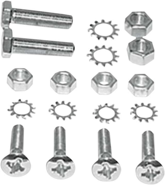 Kit includes two 3/8\"-24 bolts, four 5/16\"-24 screws, four 5/16\"-24 nuts, two 3/8\"-24 nuts, four 5/16\" lockwashers, and two 3/8\" lock washers