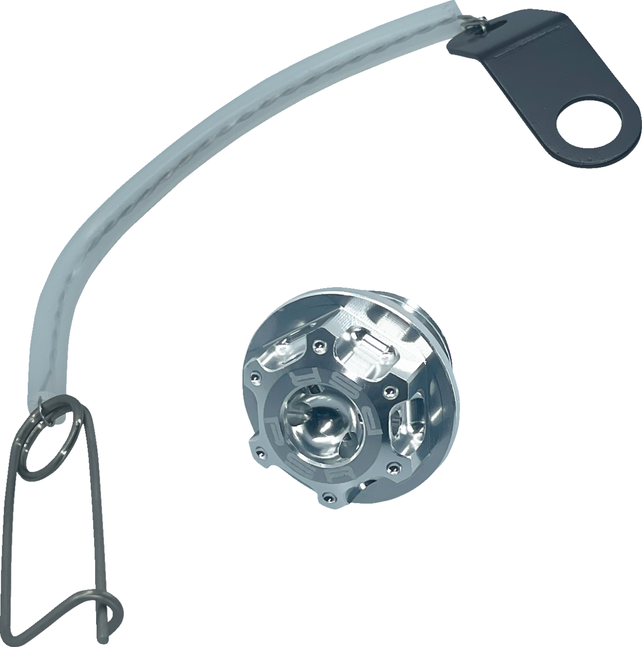 E-clip is already safety wired to a mounting tab and the wire covered with silicone tubing that will not melt or discolor