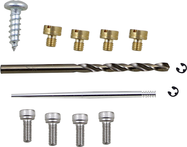 Includes Baron\'s adjustable needle, Mikuni main jets, replacement float bowl screws, drill bit, detailed instructions and tuning guide