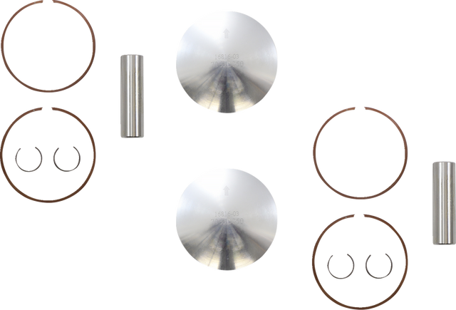 Kit includes piston, rings, wrist pin and pin locks