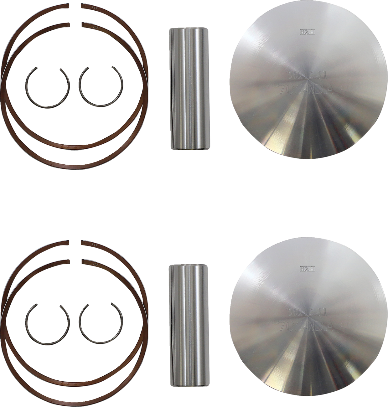 Kit includes piston, rings, wrist pin and pin locks