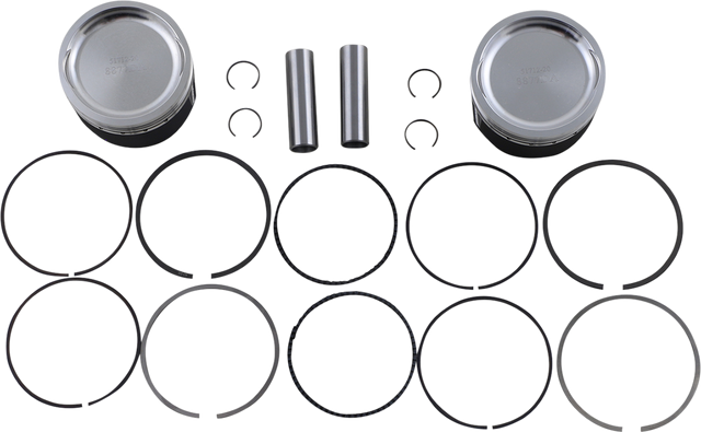 Kit includes piston, rings, wrist pin and pin locks