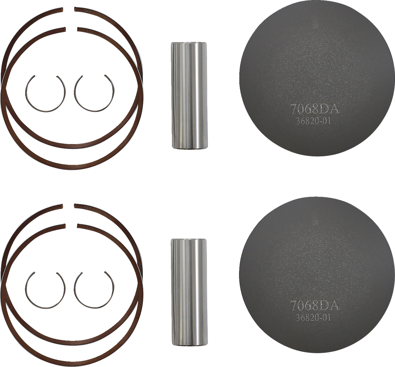 Kit includes piston, rings, wrist pin, and retaining clips unless noted