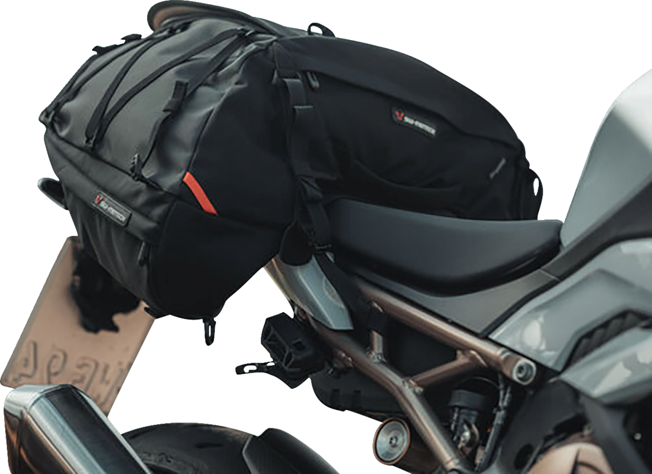 Includes tail bag, waterproof inner bag, four loop straps, two lashing eyes for attaching to the license plate holder, adhesive protective foil, and mounting instructions