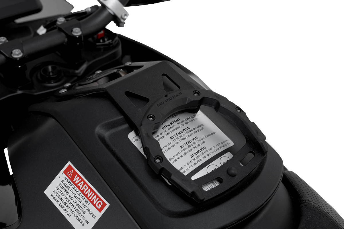 Sliding top ring comes already pre-assembled on the tank bag with a guide rail and the tank bag does not need to be drilled
