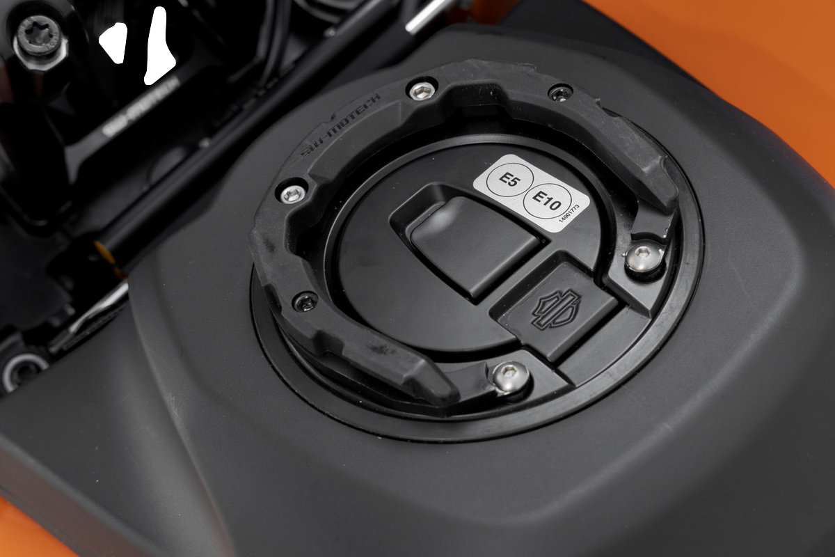 Sliding top ring comes already pre-assembled on the tank bag with a guide rail and the tank bag does not need to be drilled
