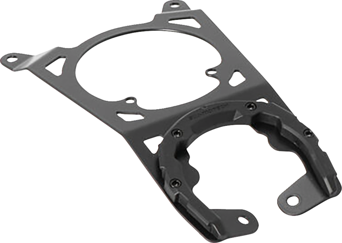 Top ring can be custom-aligned onto the guide rail on the underside of the tank bag and screwed in tight when the right angle is found