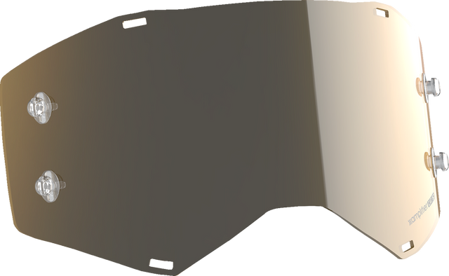 Injection-molded lens to provide improved definition and optical clarity, allowing the rider to see contours and transitions in the dirt