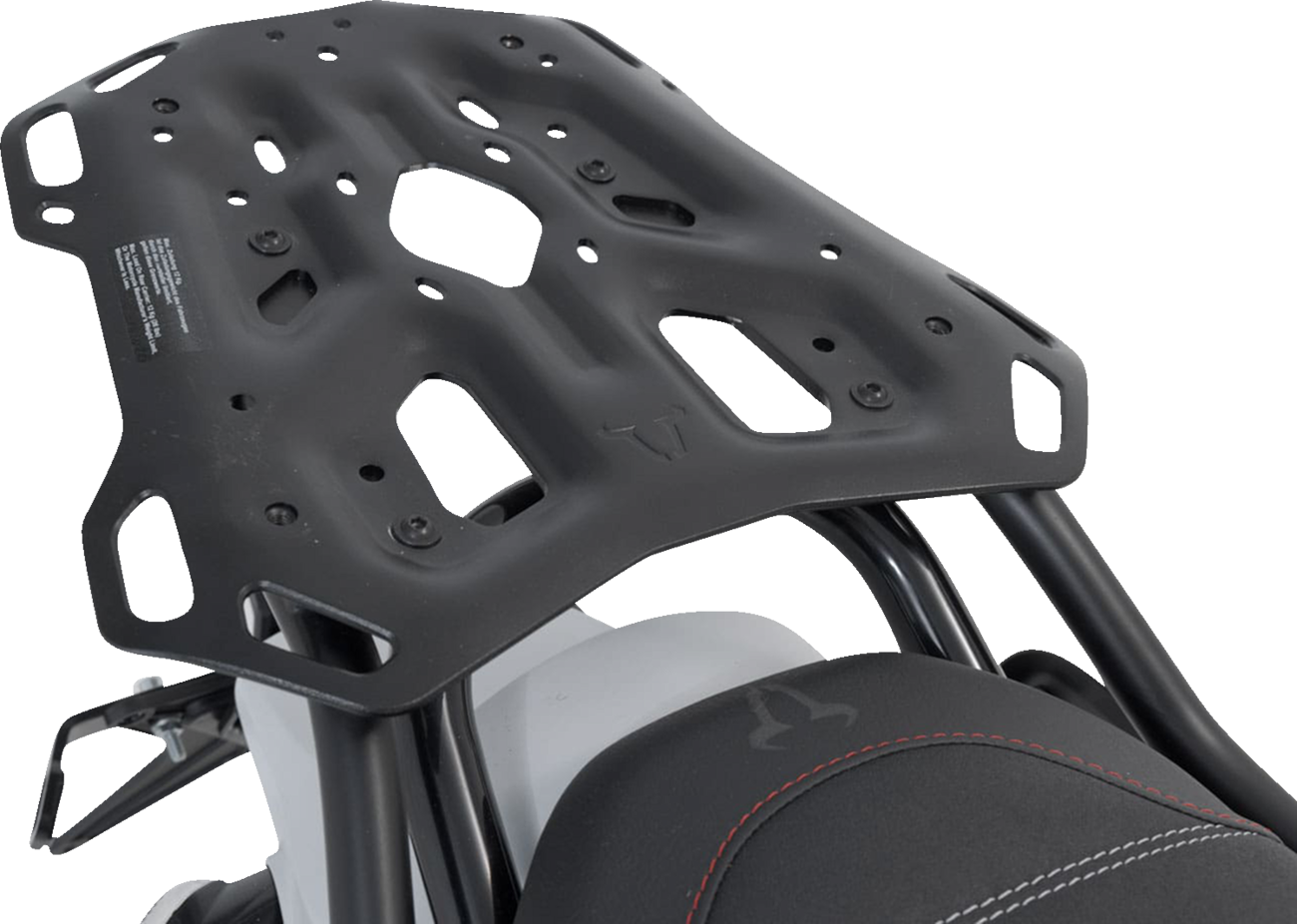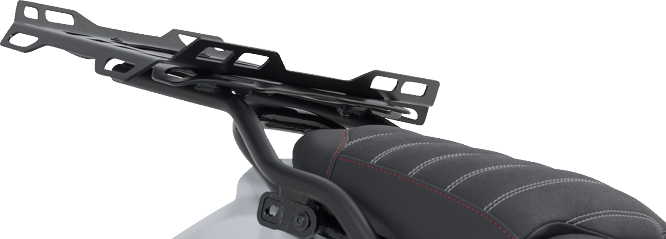 Robust rack for long tours and off-road rides featuring multiple functional bores for TRAX cases