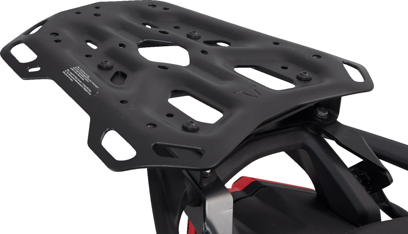 Robust rack for long tours and off-road rides featuring multiple functional bores for TRAX cases